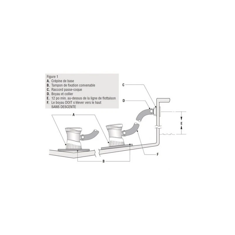 La pompe de cale livrée prête à l’installation avec le support pré-percé.